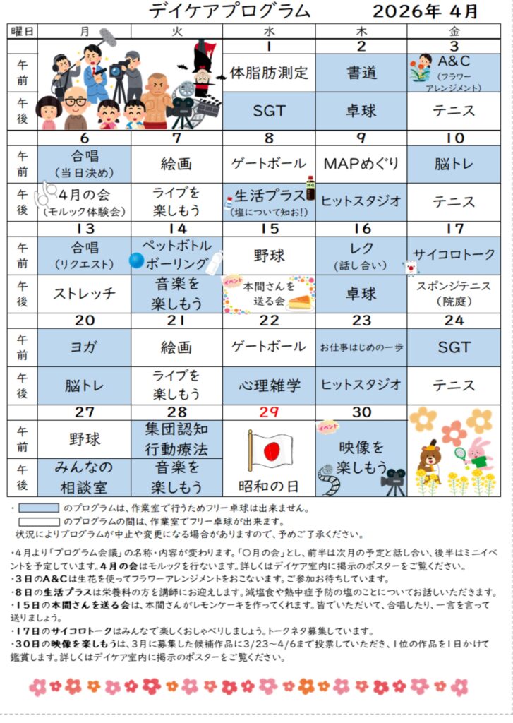 3. 4月デイケアプログラム